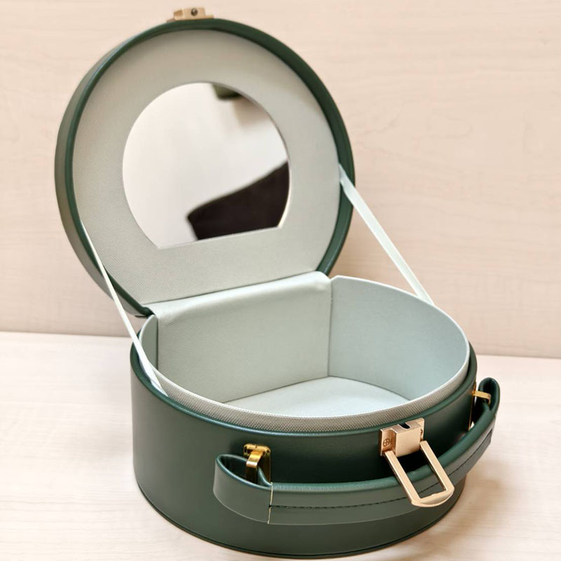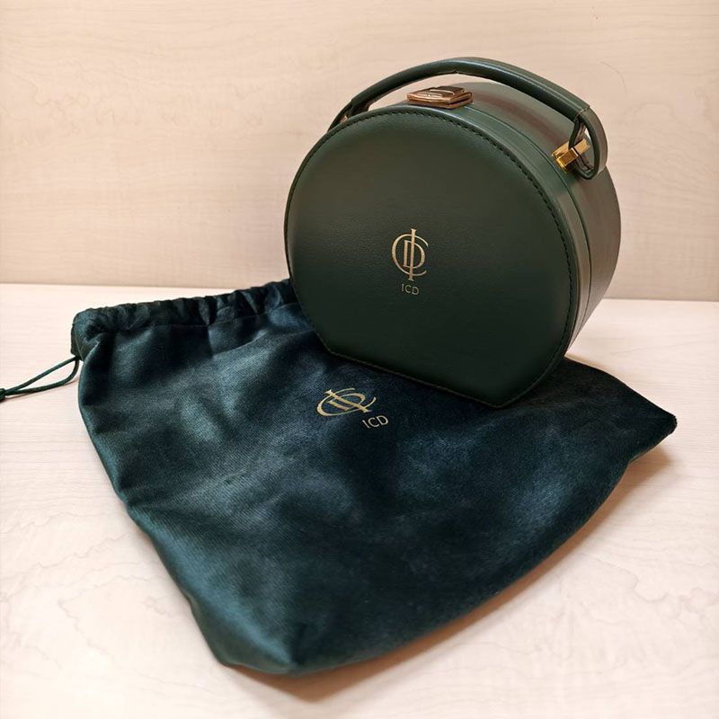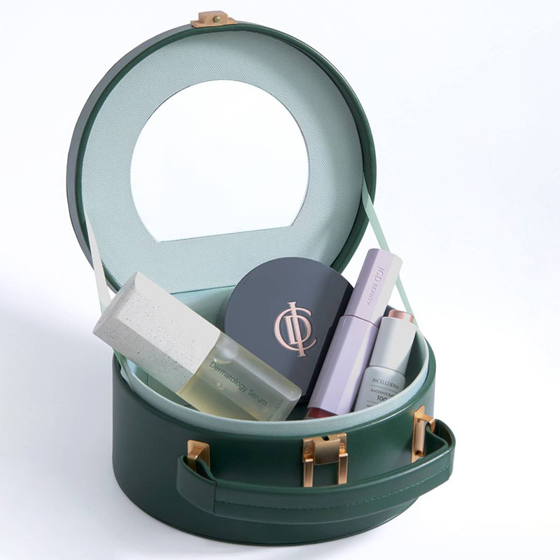 輕奢收納盒 典雅外型 × 實用容量,展現獨特質感的會員專屬禮 這款 ICD 輕奢收納盒以圓潤優雅的外型與深綠色皮革質感為亮點,搭配細緻金屬裝飾,呈現低調而細膩的精品風格。手提式設計既具美感又方便攜帶,無論放置於梳妝台、房間角落或隨行旅行,都能展現不凡品味。 打開收納盒,即可看見內層柔和的淺綠質地布面與大面鏡片配置,實用度再提升。不論是保養品、香水、彩妝工具、小型飾品,皆能井然收納。外附絨布束口袋,更增添整體高級感與贈禮體驗。