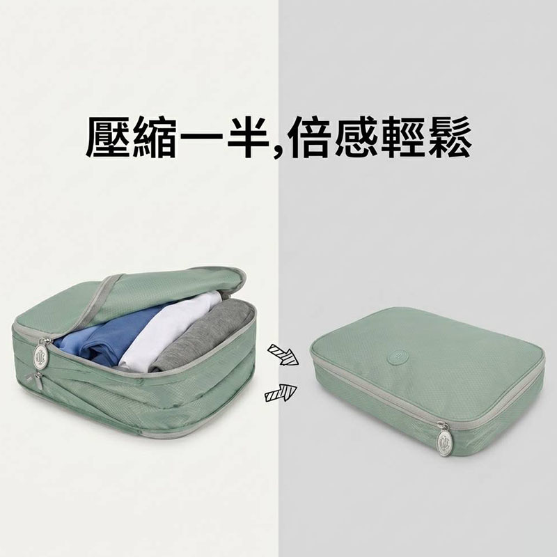 旅行壓縮袋 輕鬆壓縮收納,讓旅行多一點從容 *專為旅途收納而設計的旅行壓縮袋,以簡約俐落的外型結合實用壓縮功能,讓衣物收納更整齊、行李空間更有效利用。 *採用 拉鍊式壓縮設計,無需抽真空設備,即可快速壓縮厚重衣物與日常服飾,減少體積、提升整理效率。